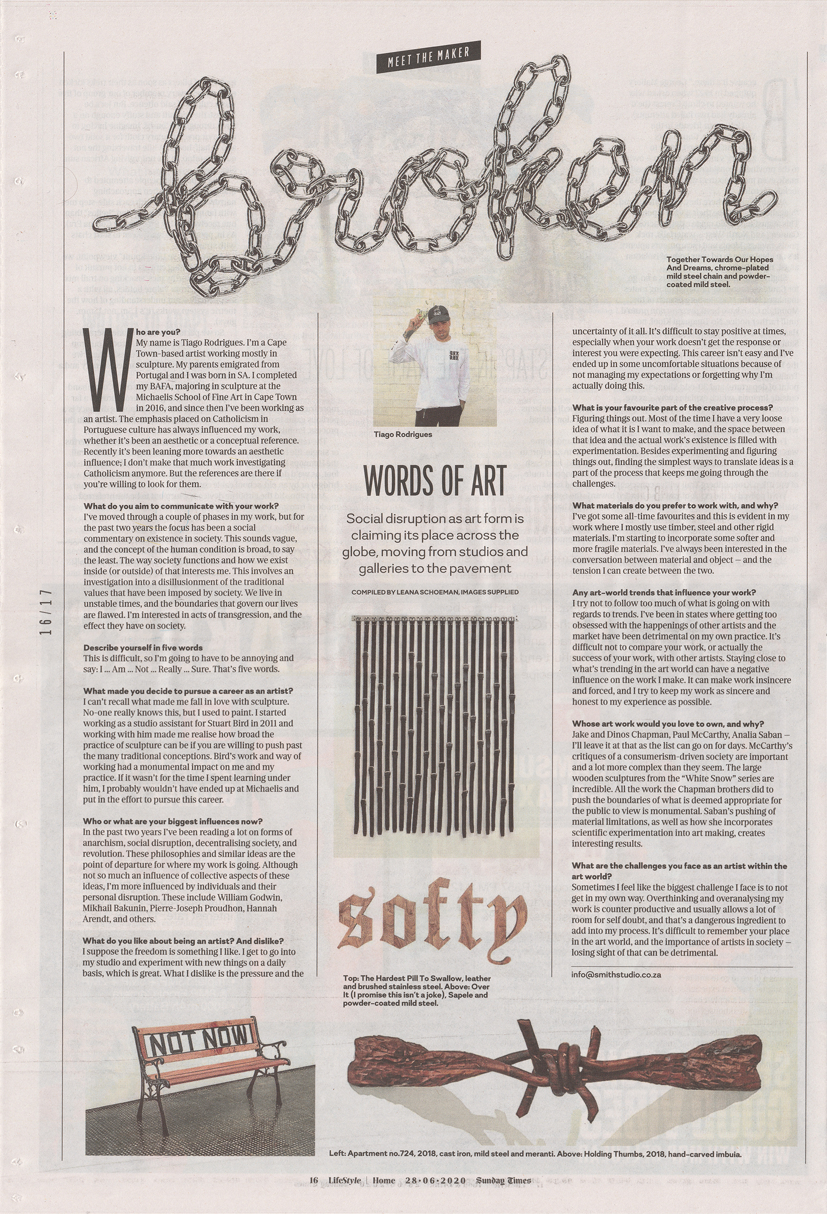 sunday times lifestyle 'meet the maker' - 28.06.2020